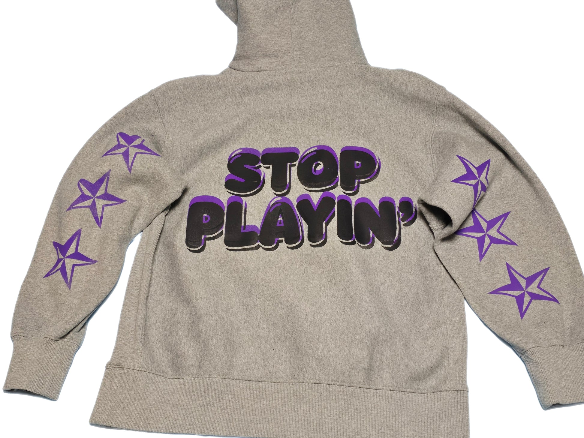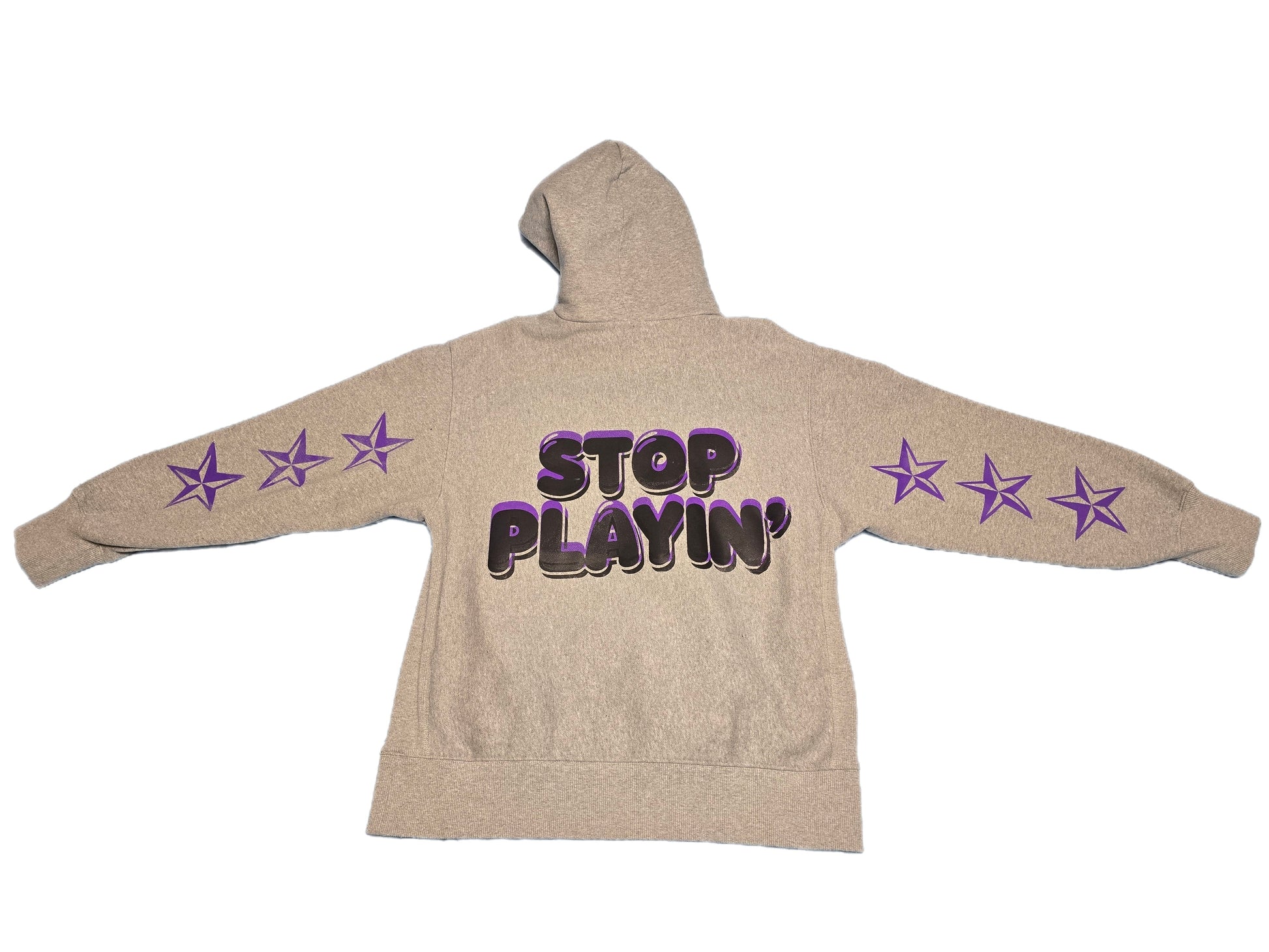 Feeture Kickz "Aye Young" Heavy Duty Hoodie Bold statement piece built for those who refuse to blend in. This heavyweight hoodie commands attention with "Aye Young" emblazoned across the front and "Stop Playtin" on the back—a dual message that speaks volumes. DC stars accent the sleeve, adding street credibility to an already fierce design. Constructed for durability and impact, it's the kind of piece that turns heads and starts conversations. Perfect for anyone ready to wear their attitude loud and clear.