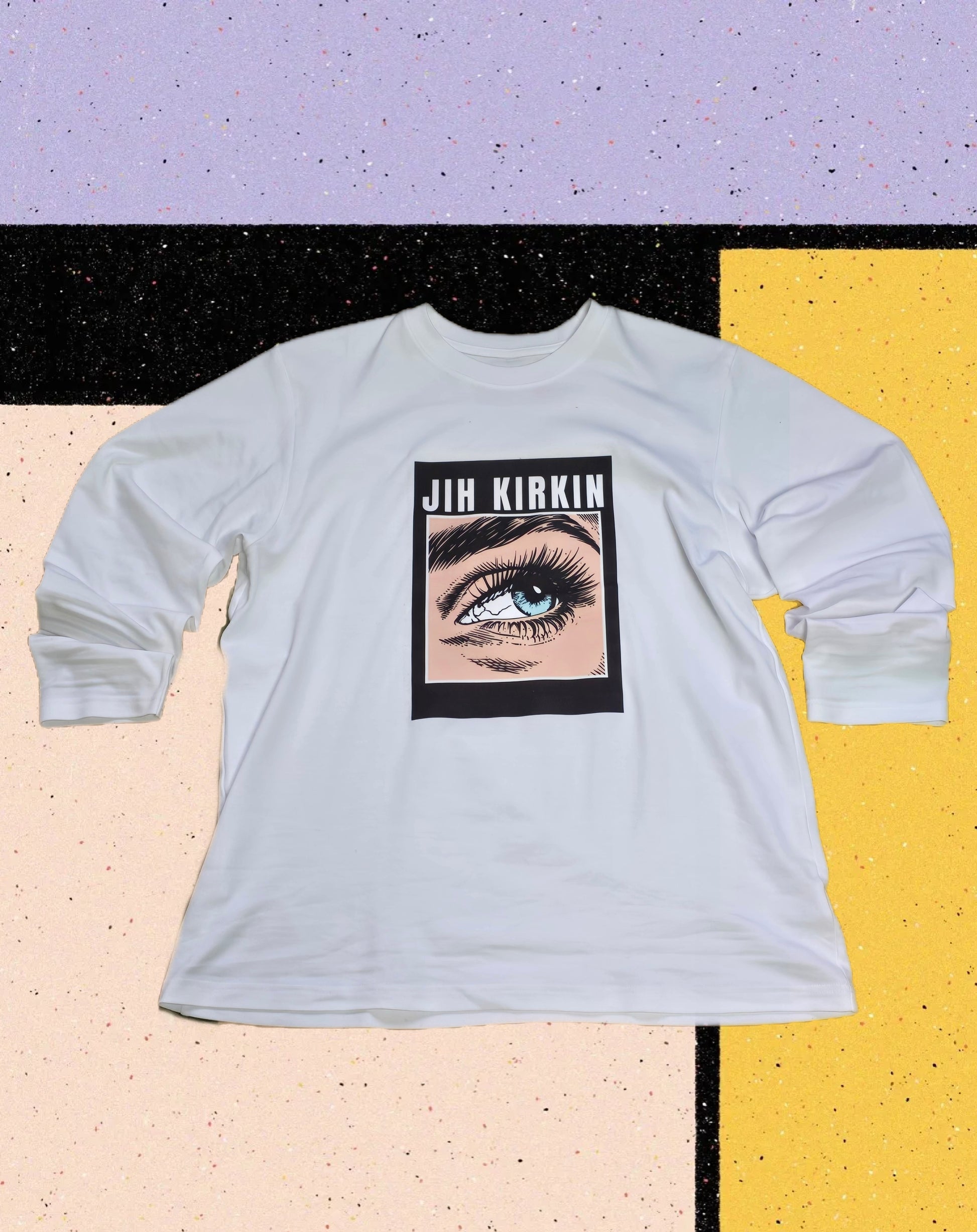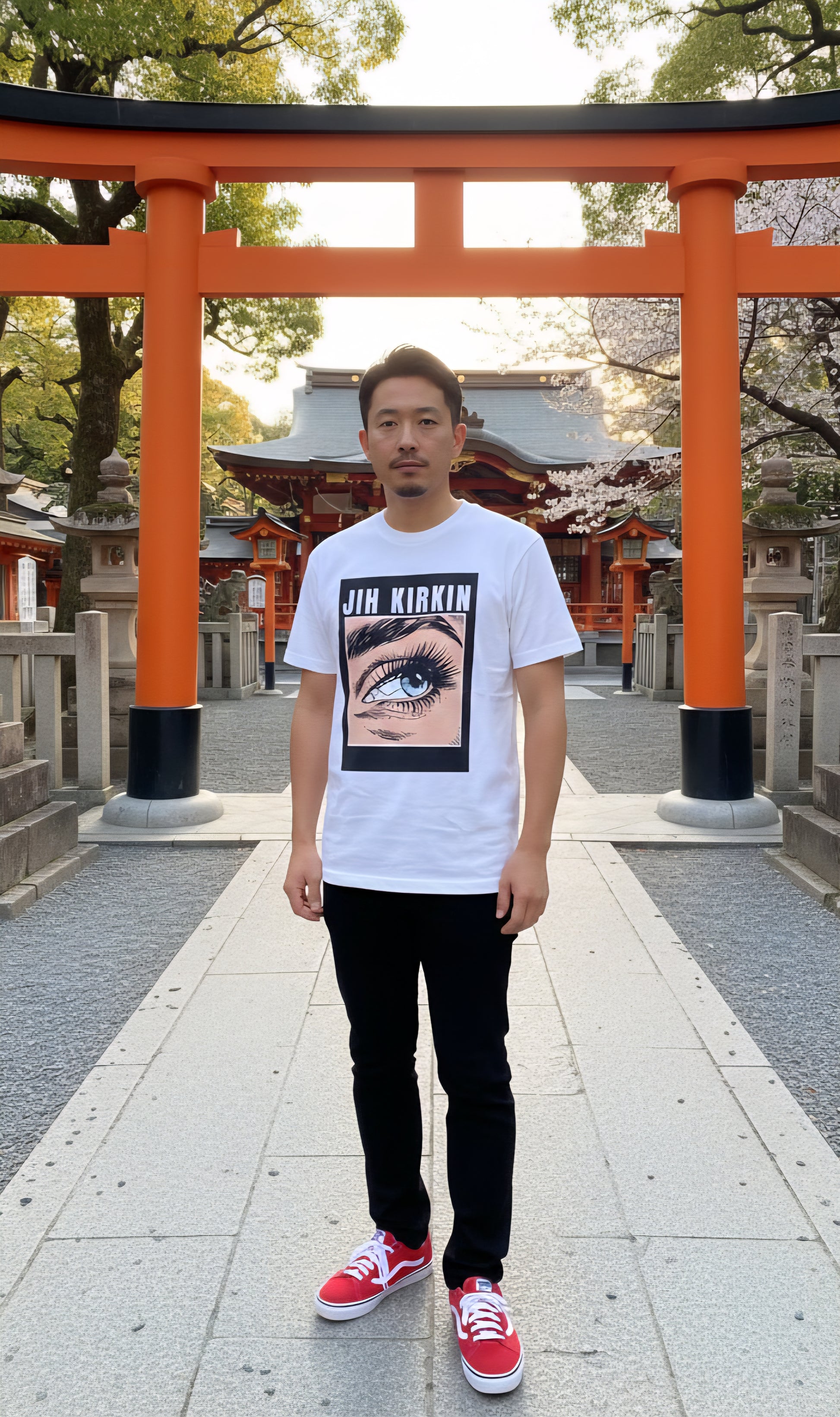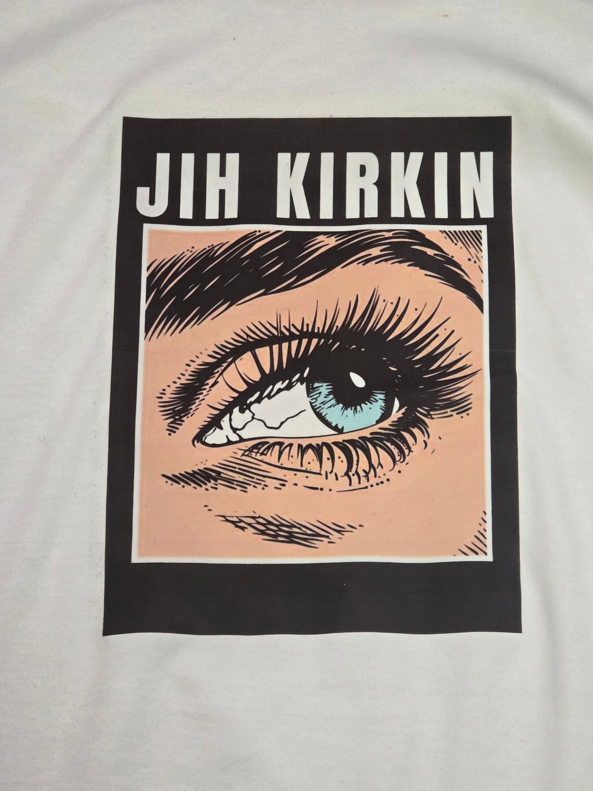 Introducing the Jih Kirkin shirt, featuring a unique eye design that never misses a beat. With the signature red Feeture logo on the back, this quirky and fun shirt is sure to turn heads. Keep your style on point and your movements in check with Jih Kirkin.